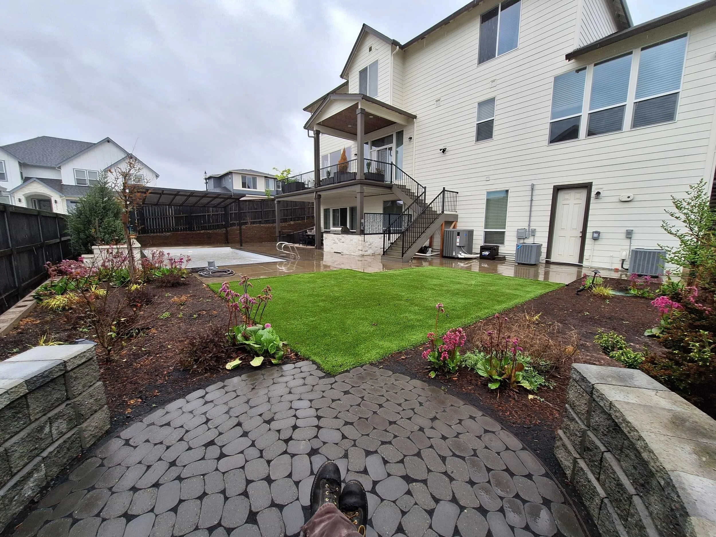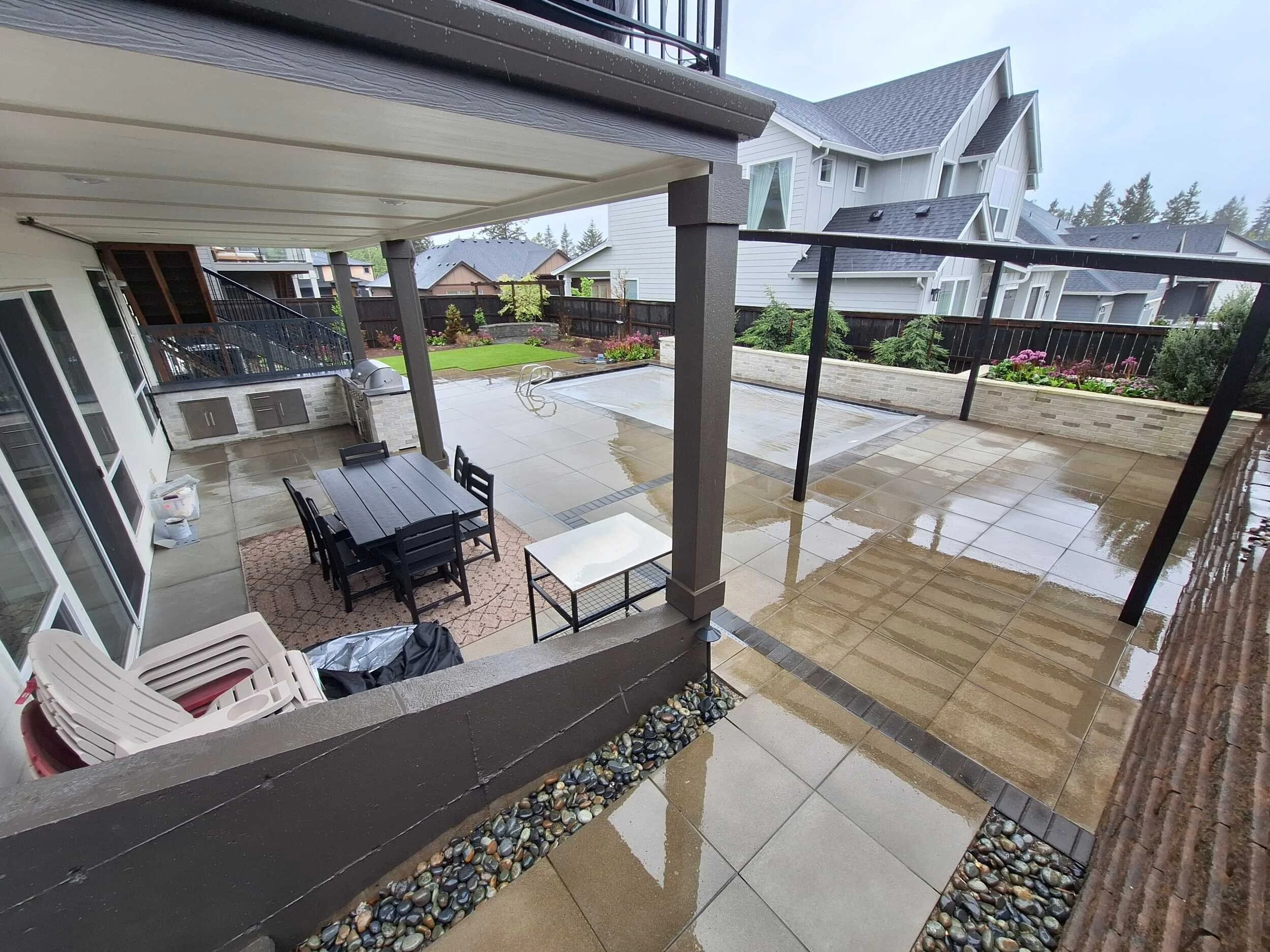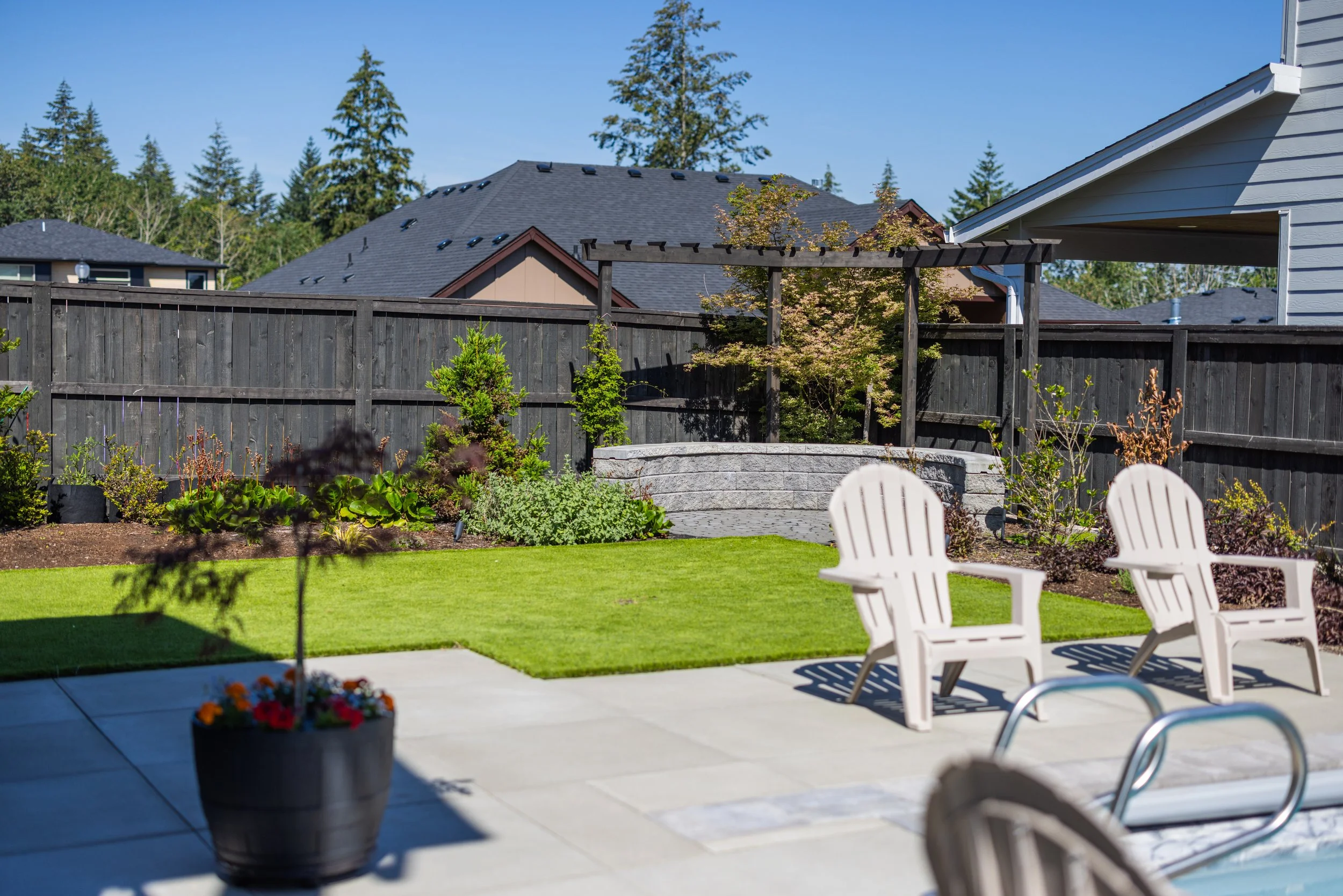 Grasstains executed a comprehensive transformation of this Camas property, creating a multi-functional estate designed for high-end entertaining and family recreation. The project harmonizes structural masonry with modern amenities, ensuring every family member—including children and pets—has a dedicated space to enjoy the outdoors. By balancing expansive play areas with sophisticated lounge zones, we delivered a resort-style retreat that maximizes the property's footprint views privay and backyard appeal.