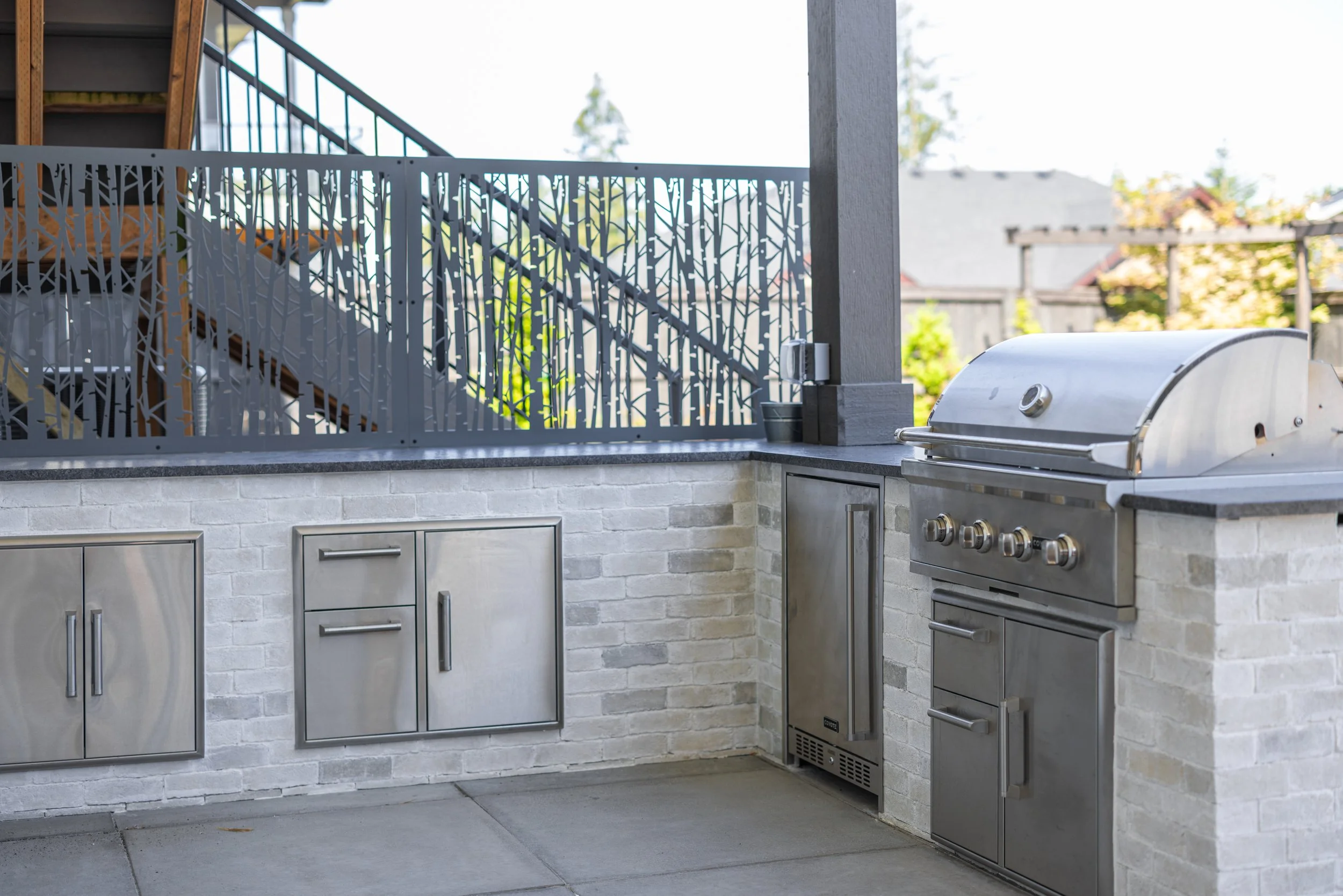 Covered Kitchen & Dining Pavilion – A large-scale permanent structure featuring a fully equipped outdoor kitchen and defined seating areas for all-season entertaining.